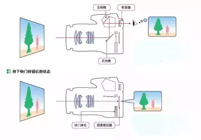 那時(shí)候區(qū)別單電相機(jī)與單反相機(jī),就在于在原本是反光板的地方采用了固定式的半透鏡。當(dāng)光線從鏡頭進(jìn)入后,有一部分被反射到機(jī)頂,給測光和對(duì)焦系統(tǒng)使用;另一部分則透過反光鏡射到圖像傳感器上,用來取景、成像。