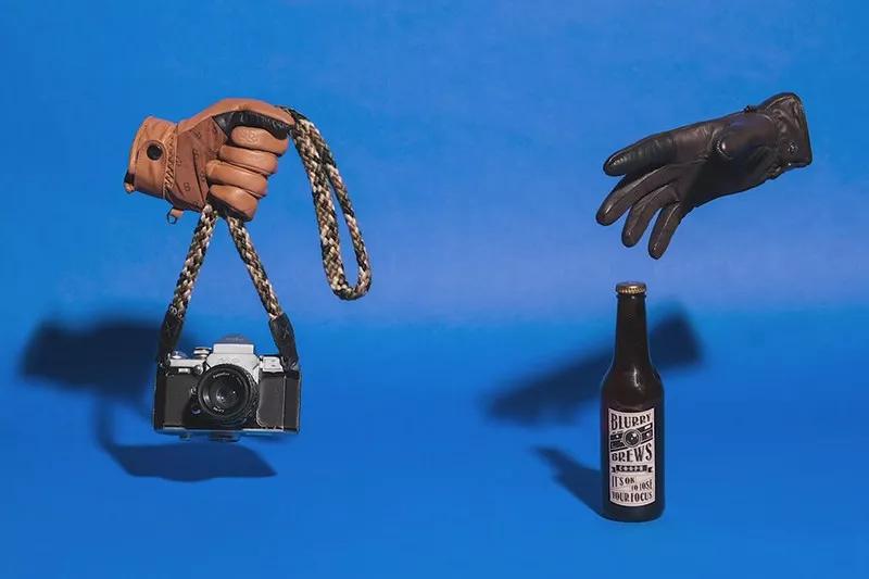 如果沒有合適的細線或者懶得做懸吊裝置,你也可以戴著手套,抓著物體來拍攝。拍攝流程還是一毛一樣的:找背景——打硬光——拿著拍一張——拍空場景——后期。