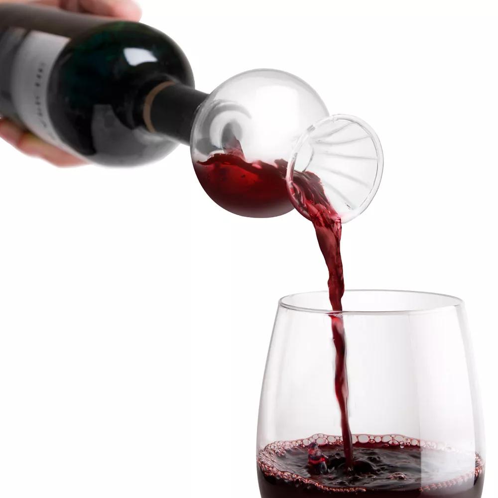 隨著科技的發(fā)展,目前市面上還有一些特殊的醒酒器。比如快速醒酒器,你只需要把它安裝在酒瓶口,然后像往常一樣倒酒即可。由于使用快速醒酒器醒酒,葡萄酒的氧化速度會比使用普通醒酒器時快很多,所以醒老酒的話,最好不要使用它。