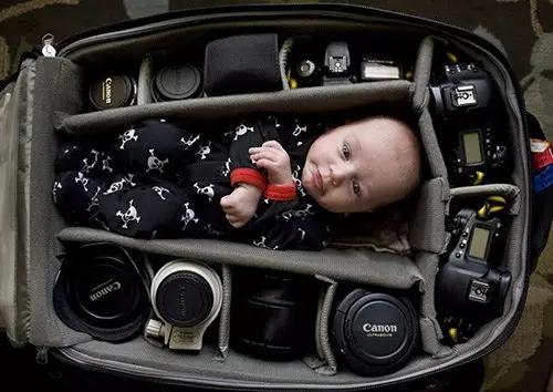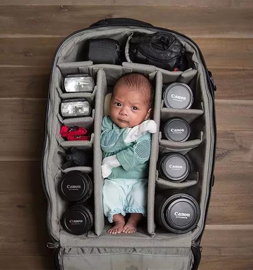 最近一群攝影師父母找到了最新的曬娃方式!就是讓寶寶們躺在父母的攝影包里。