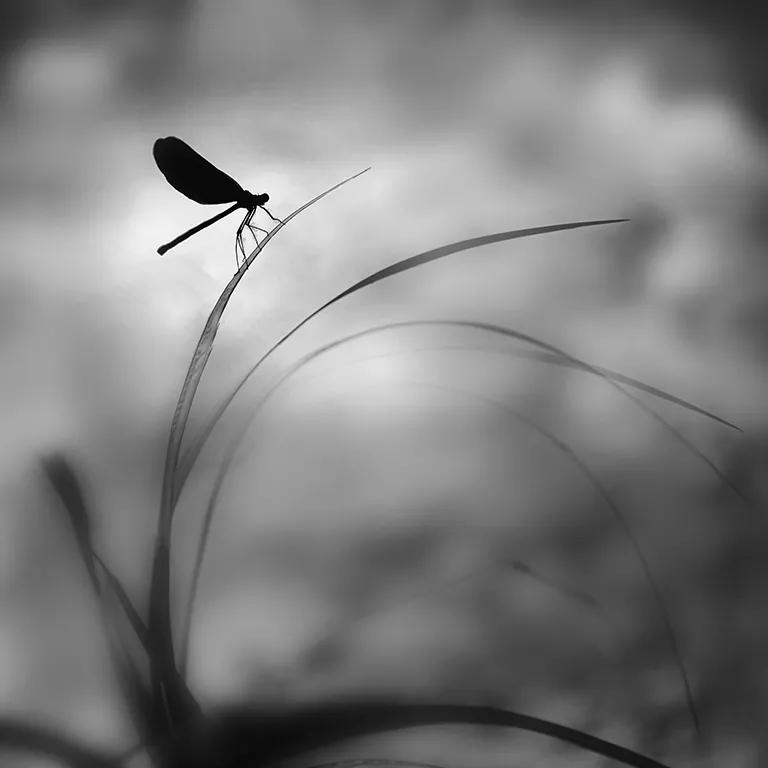 照片的意境非常好,利用了這個(gè)長(zhǎng)焦,虛化,得到一個(gè)干凈背景,然后做成黑白之后跟這個(gè)蜻蜓剪影形成一個(gè)反差,這種淡雅的黑白呢,意境還是不錯(cuò)的,所以,我覺(jué)得在接下來(lái)六七月份的這個(gè)夏天,如果所有條件大家再拍荷花,拍蜻蜓的時(shí)候,可以借鑒這樣的影調(diào)手法。