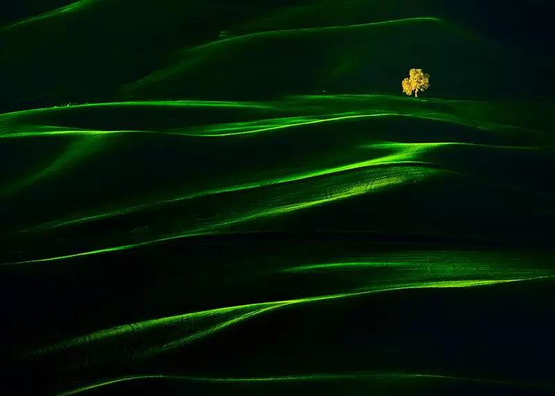 這張照片跟所有照片一樣,大量面積的暗影調(diào),但是利用光線打在山上所形成的色彩做線條構(gòu)圖,光影繪畫(huà),線條多而不亂。在攝影旅途如何觀察光線形成的對(duì)角線構(gòu)圖。