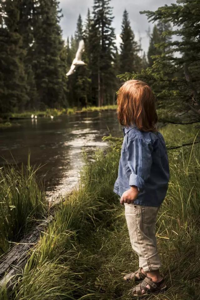 畫面上方偏左一點位置上,處于焦點之外的飛鳥,賦予作品一種陡然而生的動作感和懸念感。