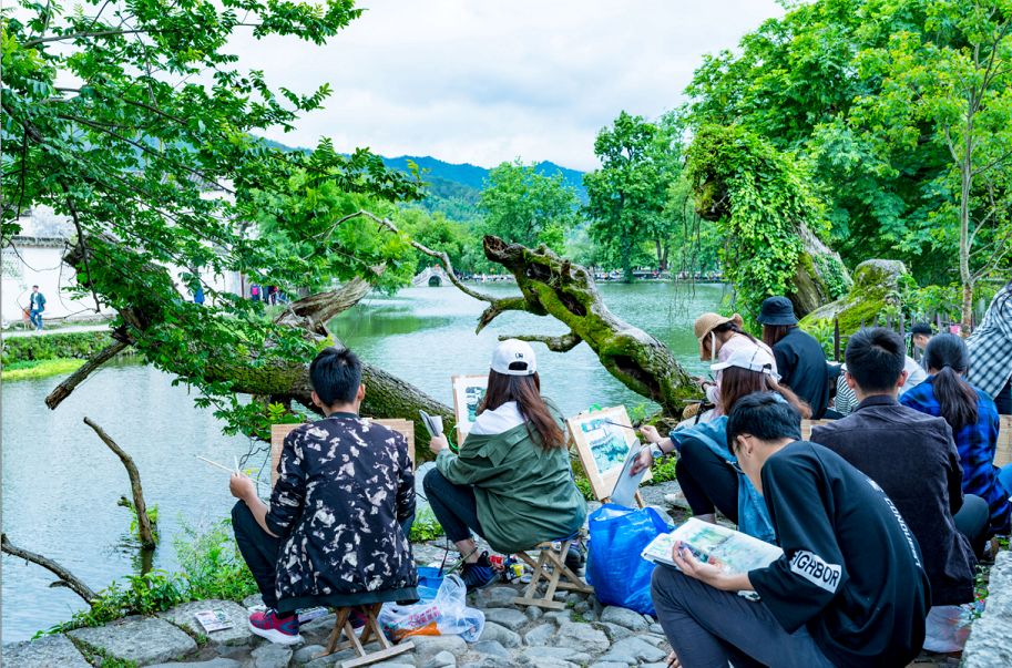 都可以看到來(lái)宏村寫生的學(xué)生,