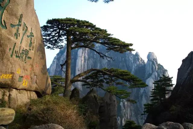 黃山原名“黟山”,因峰巖青黑,遙望蒼黛而名。后因傳說(shuō)軒轅黃帝曾在此煉丹,故改名為“黃山”。黃山代表景觀有“五絕三瀑”,五絕:奇松、怪石、云海、溫泉、冬雪;三瀑:人字瀑、百丈泉、九龍瀑。黃山迎客松是安徽人民熱情友好的象征,承載著擁抱世界的東方禮儀文化。