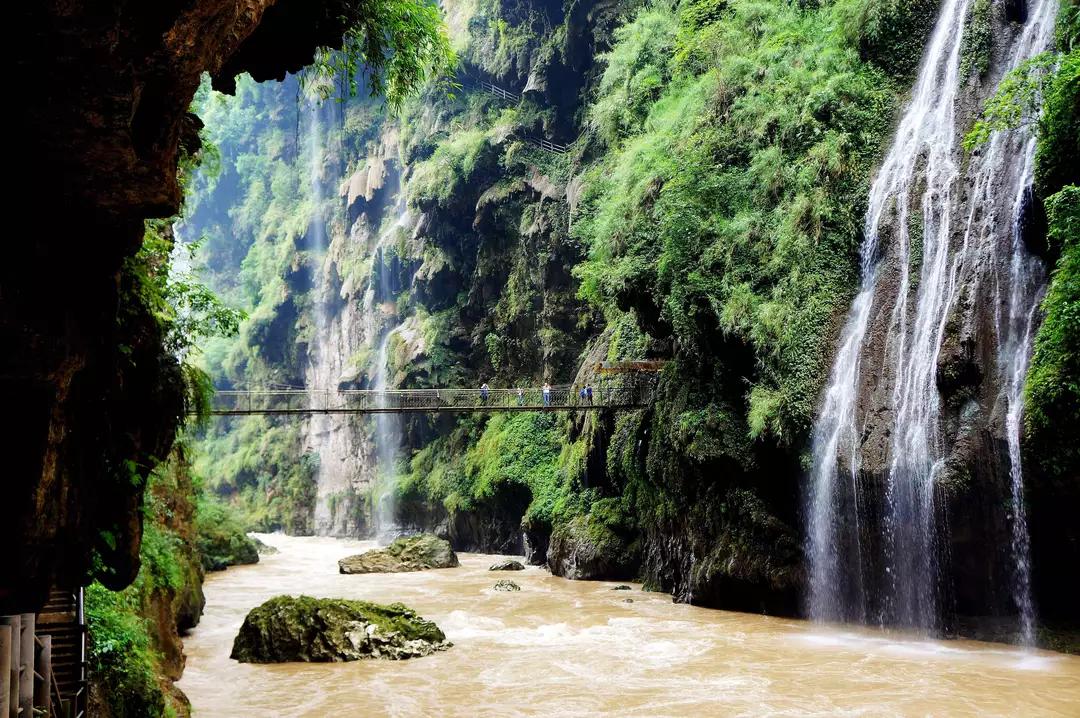下午,接著游覽距織金洞僅2公里的【織金大峽谷】。峽谷內(nèi)有保護(hù)完好的峽谷、天窗、天坑、暗河、絕壁等地質(zhì)遺跡,特別是高大的天生橋更是一絕,“水上水、洞上洞、橋上橋、天外天”等景觀被地質(zhì)學(xué)家稱為“世界一流的喀斯特景觀”,可沿懸空棧道或是乘船游覽。