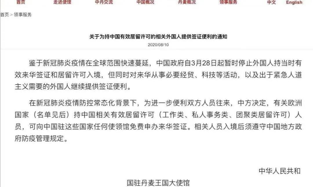 關(guān)于為持中國有效居留許可的相關(guān)外國人提供簽證便利的通知