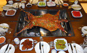 晚餐贈(zèng)送:【烤藏香豬或者烤羊】(此活動(dòng)不去不退任何費(fèi)用):在享受烤藏香豬美食中可親自上場體驗(yàn)跳鍋莊(鍋莊舞是流行于四川、云南的藏族地區(qū)以及西藏昌都一帶的藏族民間傳統(tǒng)舞蹈)?!板伹f”一詞是漢語的音譯,在藏語中稱為“果卓”, 意思是圓圈舞,免費(fèi)暢飲飲料和青稞酒。