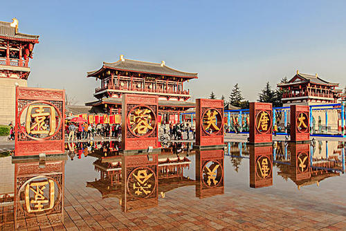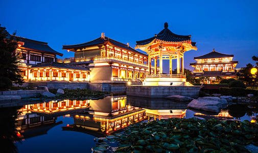 結(jié)束后赴西安游覽【大唐芙蓉園】它是在原唐代芙蓉園遺址以北,仿照唐代皇家園林式樣重新建造的,是中國第一個全方位展示盛唐風(fēng)貌的大型皇家園林式文化主題公園,園內(nèi)建有紫云樓、仕女館、御宴宮、杏園、芳林苑、鳳鳴九天劇院、唐市等許多仿古建筑,是中國最大的仿唐皇家建筑群。
