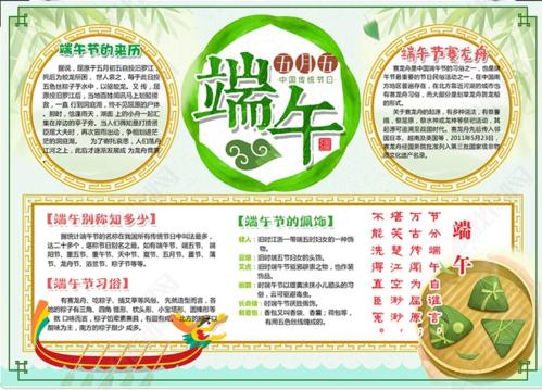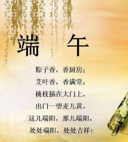 “棕子香,香廚房;艾葉香,香滿堂;桃枝插在大門上,出門一望麥兒黃;這兒端陽,那兒端陽,處處都端陽?!边@首童謠所唱的便是中國(guó)的傳統(tǒng)節(jié)日"端午節(jié)”。