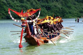 扒龍舟歷史悠久,是多人集體劃槳競(jìng)賽。龍舟競(jìng)渡分為請(qǐng)龍、祭龍神、游龍和收龍等幾個(gè)版塊。龍舟競(jìng)渡前一般都要舉行隆重的祭祀儀式,先要請(qǐng)龍、祭神。在端午前要擇吉日從水下起出,祭過神后,安上龍頭、龍尾,再準(zhǔn)備競(jìng)渡。閩、臺(tái)則往媽祖廟祭拜。在過去,人們祭祀龍神時(shí)氣氛很嚴(yán)肅,多祈求福佑、風(fēng)調(diào)雨順、去邪祟、攘災(zāi)異、事事如意。在湖北的屈原家鄉(xiāng)秭歸,也有劃龍舟祭拜屈原的儀式流傳。