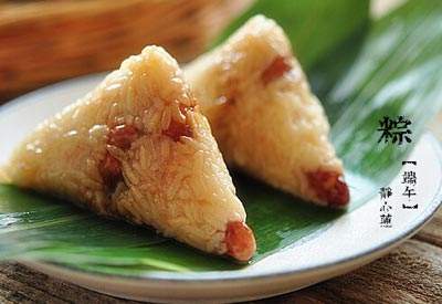 粽,即“粽籺”,俗稱粽子,主要材料是糯米、餡料,用箬葉(或柊葉)包裹而成,形狀多樣,有尖角狀、四角狀等。粽子由來久遠(yuǎn),最初是用來是祭祀祖先神靈的貢品。傳入北方后,用黍米(北方產(chǎn)黍)做粽,稱“角黍”。由于各地飲食習(xí)慣的不同,粽形成了南北風(fēng)味;從口味上分,粽子有咸粽和甜粽兩大類。端午食粽的風(fēng)俗,千百年來在中國(guó)盛行不衰,已成了中華民族影響最大、覆蓋面最廣的民間飲食習(xí)俗之一,而且流傳到朝鮮、日本及東南亞諸國(guó)。