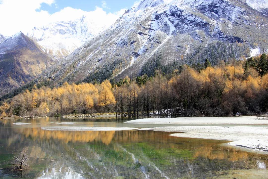有“四姑娘山后花園”美譽的畢棚溝(不含景區(qū)觀光車60元/人-上行游客中心-龍王海/下行娜姆湖酒店-游客中心),溝內有原始森林、絢麗多彩的植被、雪山溫泉,景觀豐富,一年四季各有各的美。初春時節(jié)斑駁著枯色的山林正漸漸蘇醒,枝丫生出新的綠色希望,然后就匯成一片嫩綠的海洋;溪流才開始解凍,半冰半水潺潺流動,垂卷而下的百米瀑布如白砂裹雪,這是畢棚溝一年之中顏色最為清冽的時節(jié);沿原始森林中的蜒曲的山路前行,兩旁塞滿了楓樹、槭樹、鵝掌松、落葉松,遠眺藍天高山,奇特的萬年冰川,細細品味這個“小九寨”的雋氣與柔美。