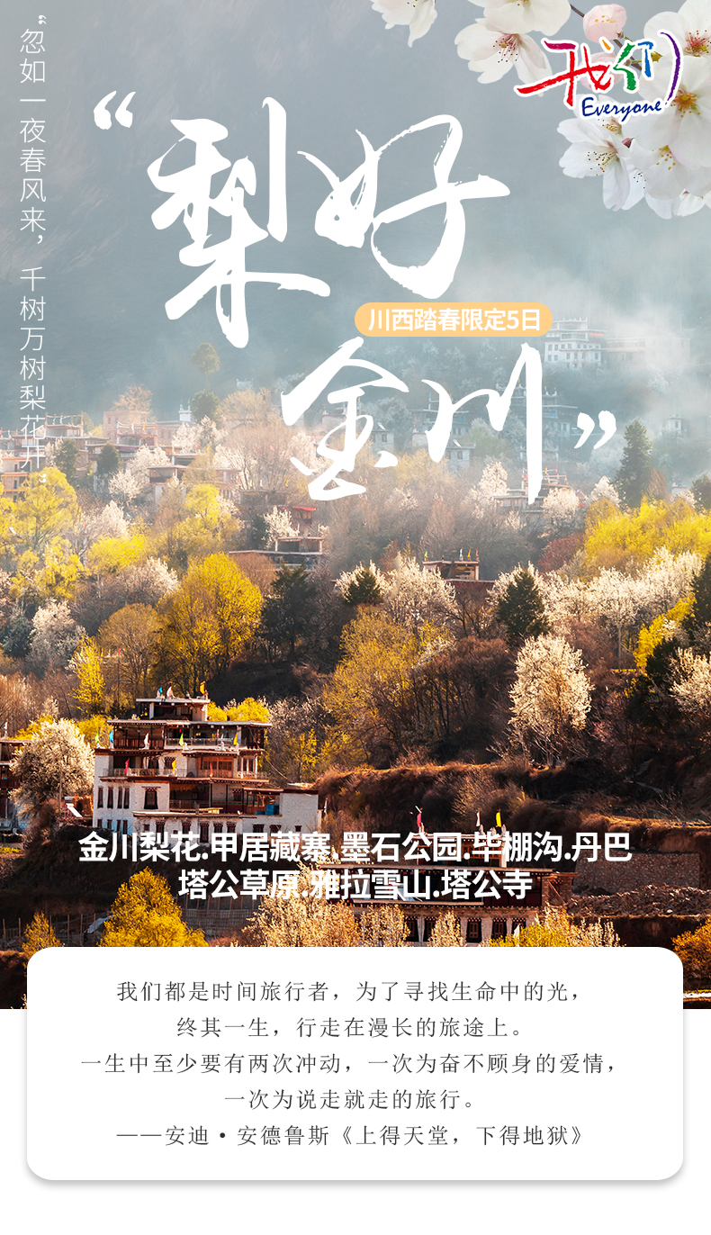 川西限定踏春金川梨花+甲居藏寨+墨石公園+畢棚溝+丹巴+塔公草原+雅拉雪山+塔公寺