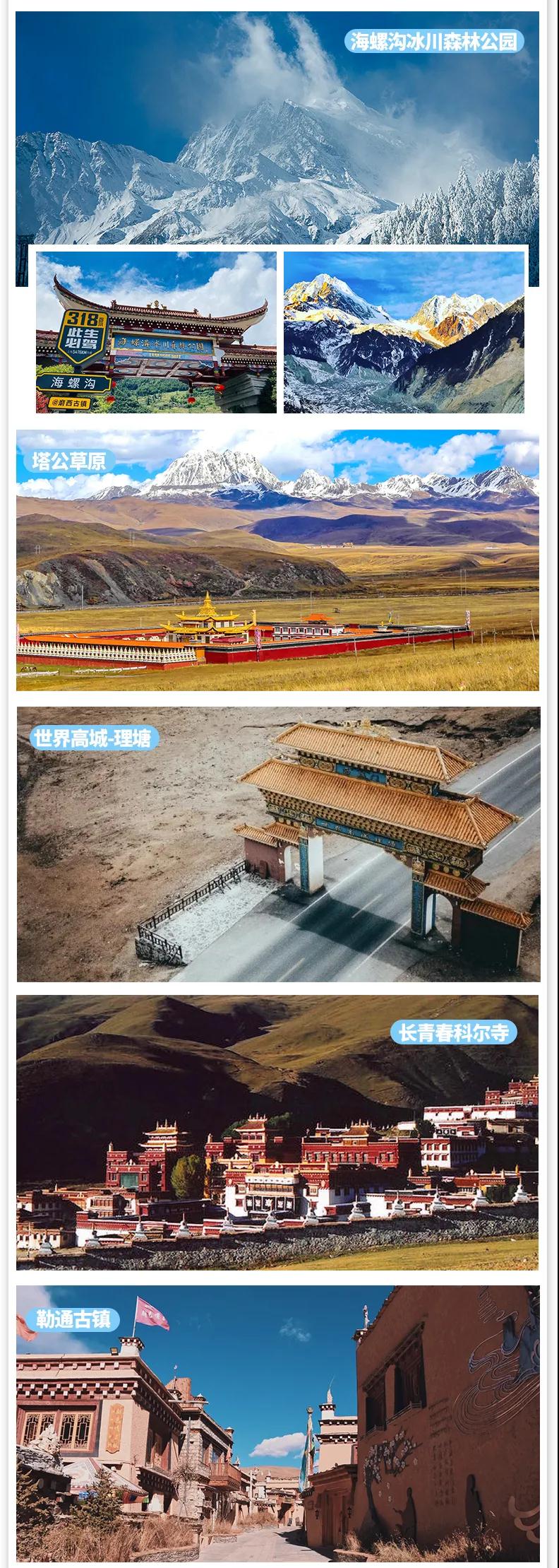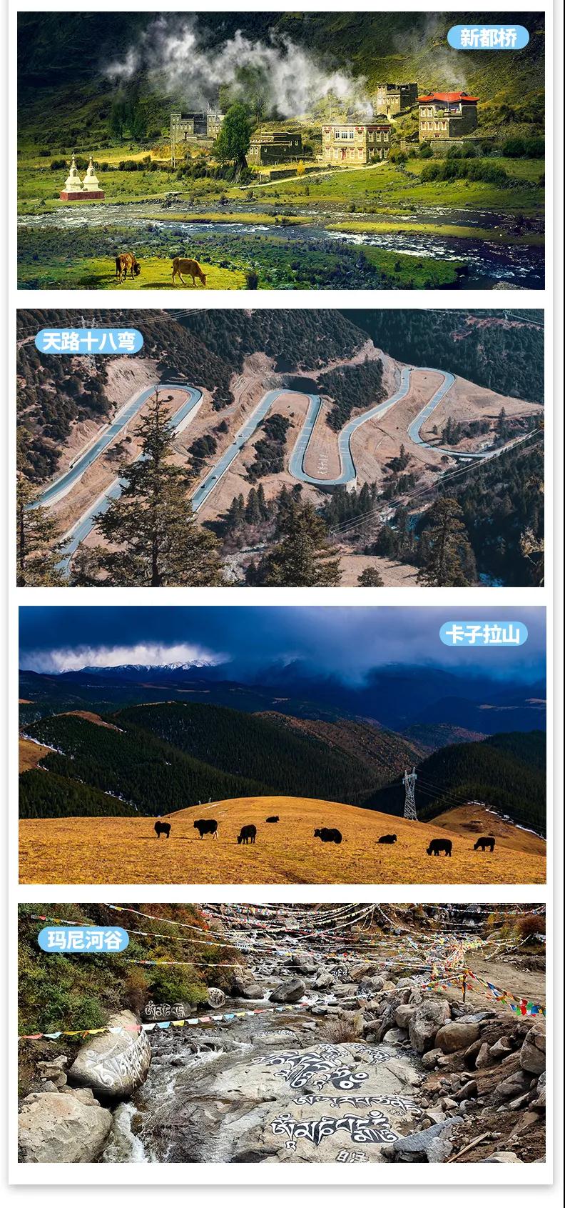 香格里拉鎮(zhèn) — 稻城 — 世界高城理塘(長青春科爾寺、勒通古鎮(zhèn)千戶藏寨) — 新都橋鎮(zhèn)