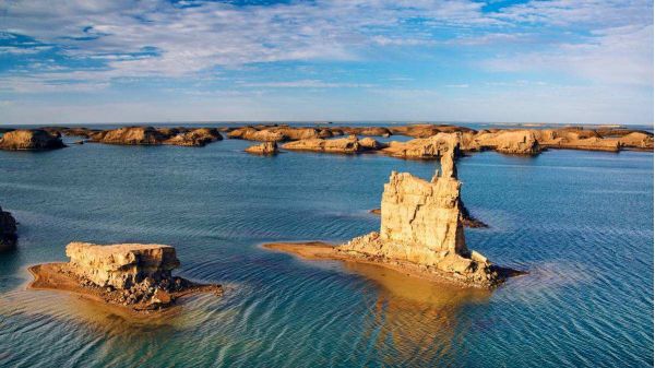 陸地的雅丹地貌很多,但是水上雅丹卻極為少有,離大柴旦240公里左右,過了東臺收費站約50公里,位于315國道旁2公里左右的鴨湖是這片特殊地貌之中的特殊,是世界上唯一一片在水上的雅丹地貌。這里還未被過度開發(fā),這里還有著神秘面紗,你是探秘也好,你是好奇也罷,當你走進這里,你一定會愛上她。