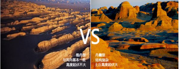 ② 土丘高度:丹霞的空間結(jié)構(gòu)就復(fù)雜的多,幾米到幾百米不等;雅丹型魔鬼城中,一個片區(qū)里的土丘高度大致相當,起伏不大;