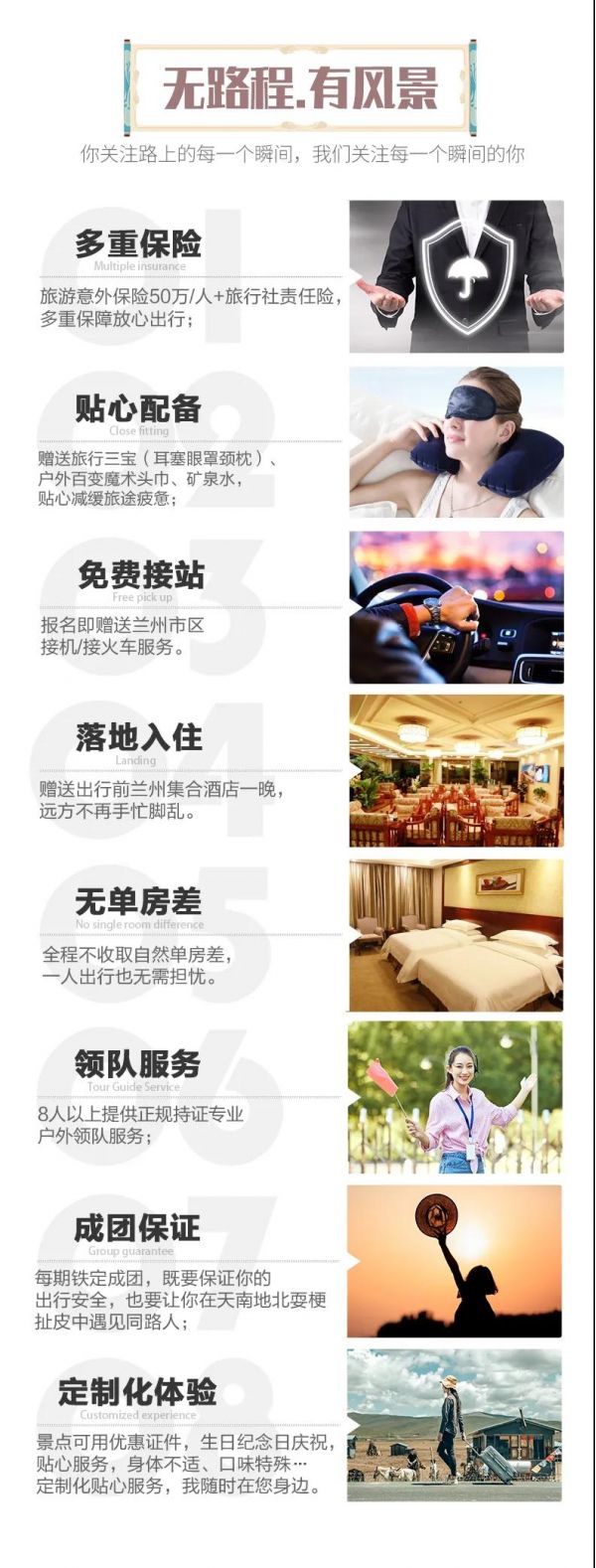 (2)贈送蘭州市區(qū)接機/接火車服務(wù),23點后由于運管規(guī)定不能接機/接站,敬請諒解。