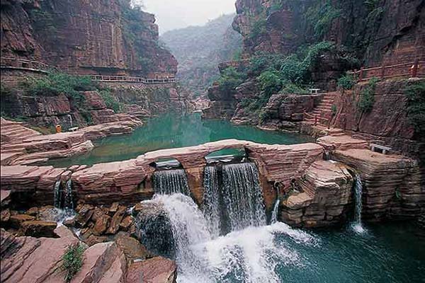 云臺山風景區(qū)含紅石峽、潭瀑峽、泉瀑峽、子房湖、茱萸峰、疊彩洞、獼猴谷、百家?guī)r、萬善寺等主要景點,景區(qū)因山勢險峻,峰壑之間常年云鎖霧繞而得名。云臺山主峰茱萸峰海拔1297.6米,景區(qū)泉瀑峽盡端的云臺天瀑單級落差314米,是我國乃至亞洲單級落差最大的瀑布,被譽為華夏第一高瀑,是云臺山的標志性景觀之一。
