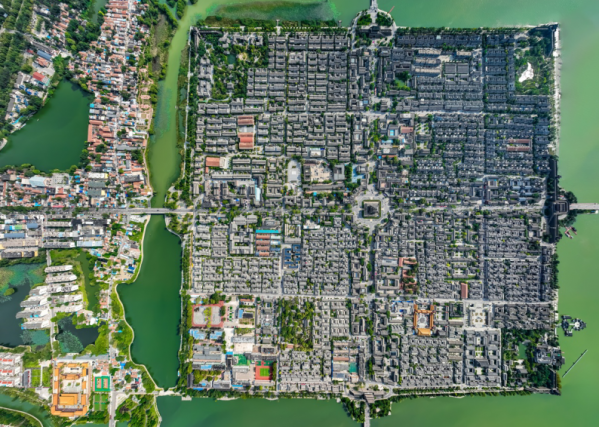 東昌湖始建于宋熙寧三年(公元1070年),在原護(hù)城河的基礎(chǔ)上經(jīng)歷代開(kāi)挖而成,現(xiàn)有水域4.2平方公里,為中華人民共和國(guó)江北地區(qū)罕見(jiàn)的大型城內(nèi)湖泊。東昌湖引黃河水為源,常年水深3-5米,湖水清澈,無(wú)任何工業(yè)污染;景色宜人,令游客流連忘返。東昌湖中心是已有千年歷史的1平方公里的正方形聊城古城。古城風(fēng)貌保存完好,以古城正中的光岳樓為中心,向四面輻射,形成東西南北四條古城區(qū)干道,其它大街小巷,也都是經(jīng)緯分明,垂直交叉,形成棋盤(pán)方格網(wǎng)狀骨架。古城區(qū)民居,至今保留著白墻、灰瓦、城屋頂?shù)膫鹘y(tǒng)建筑風(fēng)格。古老的京杭運(yùn)河兩岸,街巷布列,各種店鋪民居,隨坡就勢(shì),依河而建。條石鋪砌的大小碼頭,株株蒼勁的古槐,以及宋代隆興寺鐵塔,國(guó)家重點(diǎn)文物、清代建筑山陜會(huì)館,仍會(huì)使人們體味到昔日運(yùn)河漕運(yùn)鼎盛時(shí)期古聊城的繁榮和輝煌。通過(guò)有效地開(kāi)發(fā)和利用這些得天獨(dú)厚的旅游資源,形成了東昌湖風(fēng)景名勝區(qū)的重要內(nèi)容——湖濱風(fēng)景區(qū)、古城文化區(qū)和運(yùn)河風(fēng)情區(qū)。