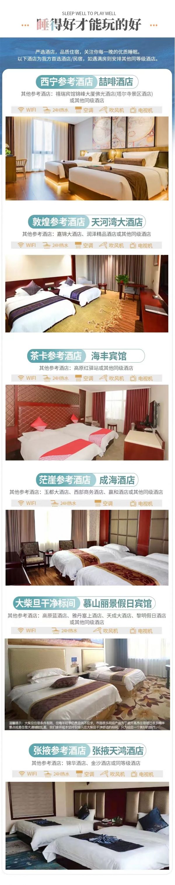 早上睡到自然醒,吃過早餐,前往中國版的“天空之鏡”【茶卡鹽湖】 。茶卡的天空異常干凈,在白色之上。與其說是天空之鏡,不如說是一場(chǎng)幻境,天地一線,在現(xiàn)實(shí)世界中早已很難找到如此純凈的地方,白得是如此的徹底,抬起頭,頭頂有著一片藍(lán)天,低下頭,腳下仍是一片藍(lán)天,已分不清是天空倒影在湖水中,還是湖水融化在藍(lán)天里。大家可以在鹽湖里奔跑嬉戲,盡情的凹造型拍照。