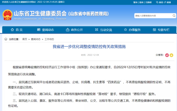 根據(jù)省委統(tǒng)籌疫情防控和經(jīng)濟(jì)運(yùn)行工作領(lǐng)導(dǎo)小組(指揮部)辦公室通知要求,自2022年12月5日零時起對有關(guān)疫情防控政策措施進(jìn)行優(yōu)化調(diào)整。