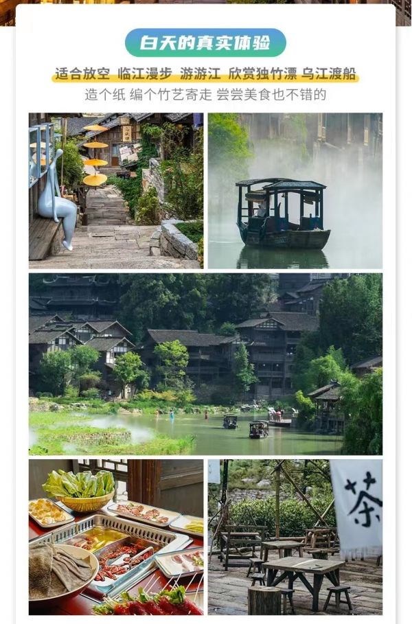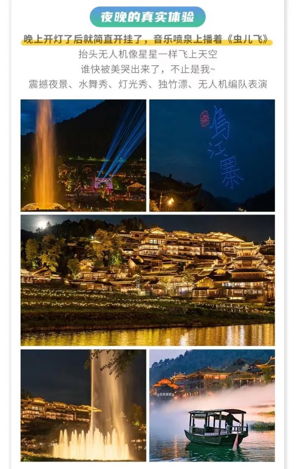4.保證入住網(wǎng)紅國(guó)際度假區(qū)——烏江寨,震撼夜景、水舞秀、燈光秀、獨(dú)竹漂和無(wú)人機(jī)編隊(duì)等表演。