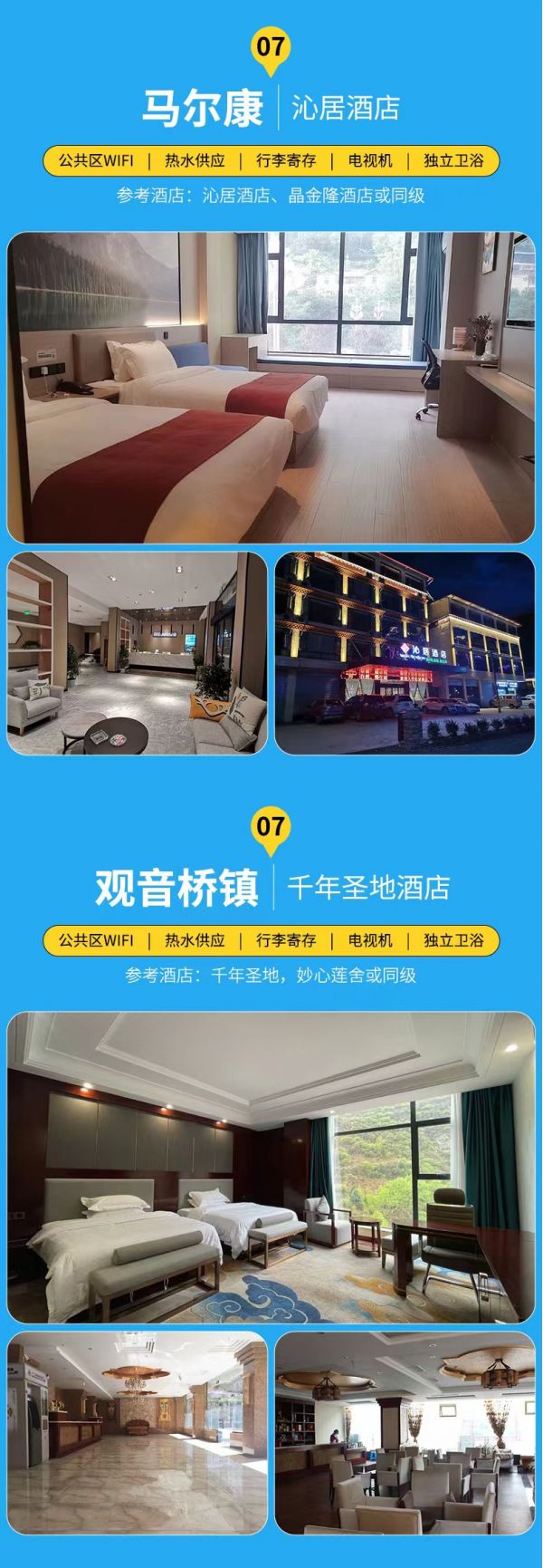 住宿:觀音橋或馬爾康酒店標(biāo)間