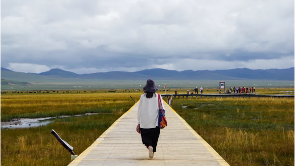 然后我們前往若爾蓋。沿途欣賞【若爾蓋草原】風(fēng)光,若爾蓋草原宛如一塊鑲嵌在川西北邊界上瑰麗奪目的綠寶石,素有"川西北高原的綠洲"之稱,是我國(guó)三大濕地之一。“天蒼蒼野茫茫風(fēng)吹草地見(jiàn)牛羊”是若爾蓋草原的真實(shí)寫(xiě)照。