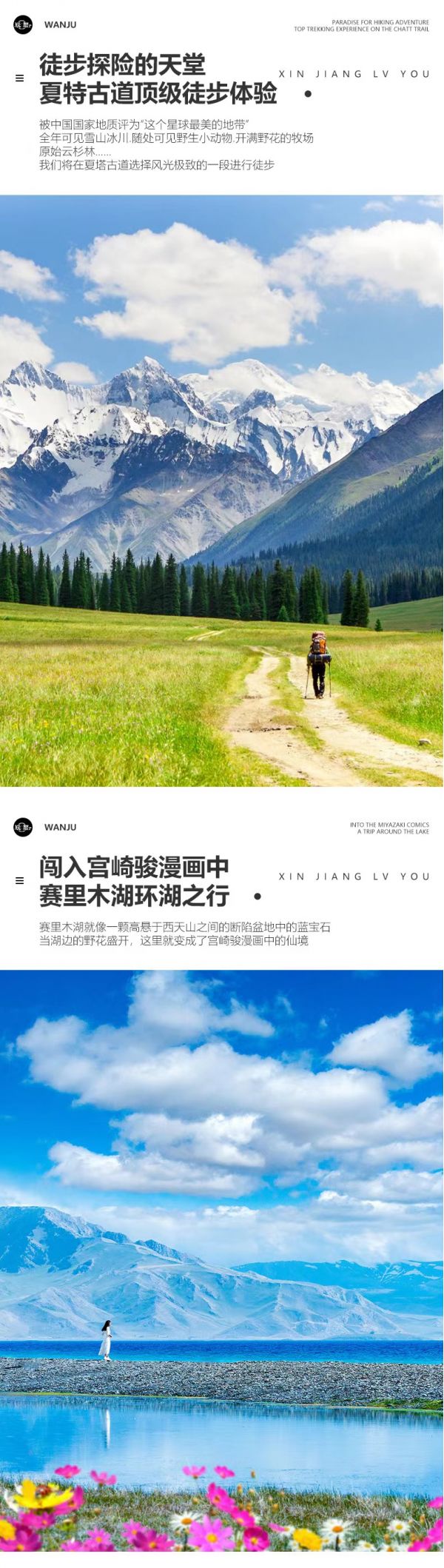 早餐后,乘車前往【天山花海】,園區(qū)建有萬畝花海觀賞區(qū)、生態(tài)作物種植區(qū)、綜合服務(wù)區(qū)、特色餐飲街、極限挑戰(zhàn)區(qū)、空域體驗(yàn)區(qū)、網(wǎng)紅打卡區(qū)、疆域特色有機(jī)林果、特色生物種植采摘區(qū)和萌寵養(yǎng)殖區(qū)等。目前薰衣草種植面積最大,隨山坡起伏坡度種植的薰衣草綿延至山邊,景色非常壯觀。后繼續(xù)夏塔,沿途是昭蘇秀美的平原風(fēng)光,6-7月,是油菜花,紫蘇草盛開的季節(jié),走進(jìn)昭蘇草原,就如同走進(jìn)了一個(gè)廣闊的夢(mèng)境,低垂的云朵讓你迷失在無盡的色彩之中。游覽【夏塔古道】溝通天山南北,是古絲綢之路上最為險(xiǎn)峻的一條著名古驛道。2000年前秦漢的和親公主從這里遠(yuǎn)托異國(guó);1300年前唐玄奘從這里翻閱3500米的哈達(dá)木孜達(dá)坂,到達(dá)天山南麓的佛國(guó)龜茲...是戶外驢友以及徒步者的天堂。當(dāng)然我們不會(huì)去全程穿越,選擇了一段的休閑徒步。伴著緩緩升起的太陽,沿著山谷的小徑一路走近木扎爾特冰川,沿途的野花、牛羊、流水,風(fēng)景這邊獨(dú)好!