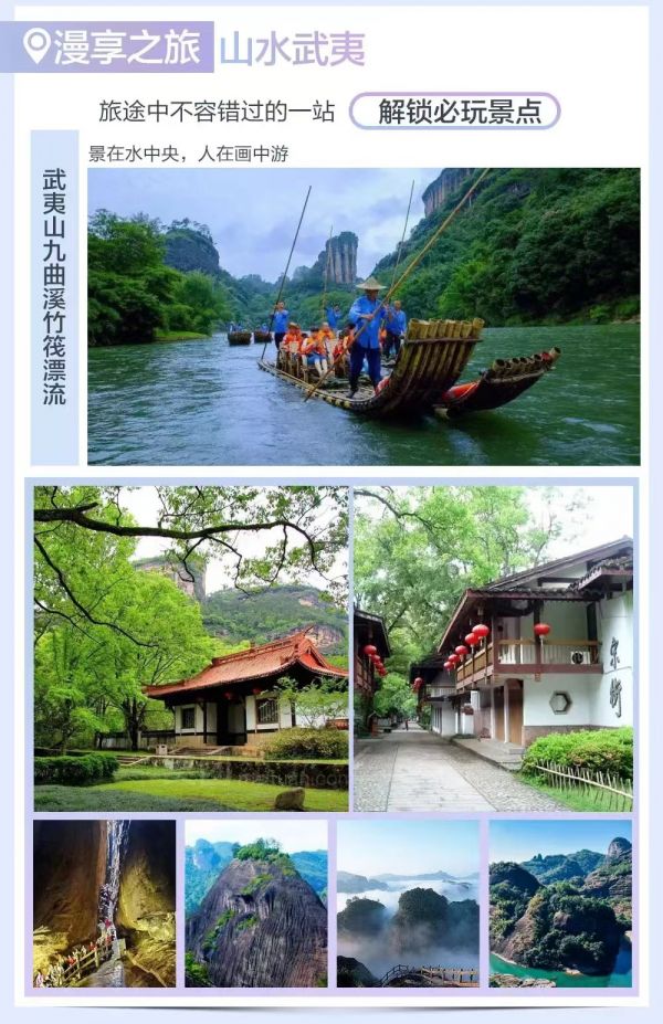 早上可以睡到自然醒,享用早餐后,可以享受寧?kù)o的上午,也可以在度假區(qū)到處逛逛,賞武夷山自然風(fēng)光,中餐后根據(jù)航班時(shí)間送上饒機(jī)場(chǎng),乘飛機(jī)返回濟(jì)南,結(jié)束本次愉快的旅行!