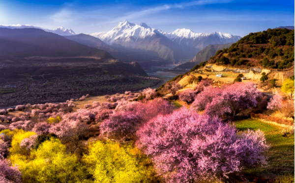 春天來了。桃花,梨花,櫻花,杏花,油菜花都開了。白的似雪,粉的像霞,黃的賽金??諝饫锒纪钢还商鹣?。