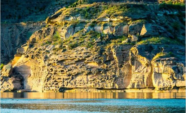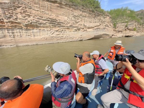 黃河畫廊,位于晉陜黃河大峽谷磧口段,是砂巖石經(jīng)過多年黃河水沖刷、風(fēng)化、自然形成的浮雕壁畫。乘坐游艇到黃河中才能看到"浮雕"。此處參觀1小時(shí)。