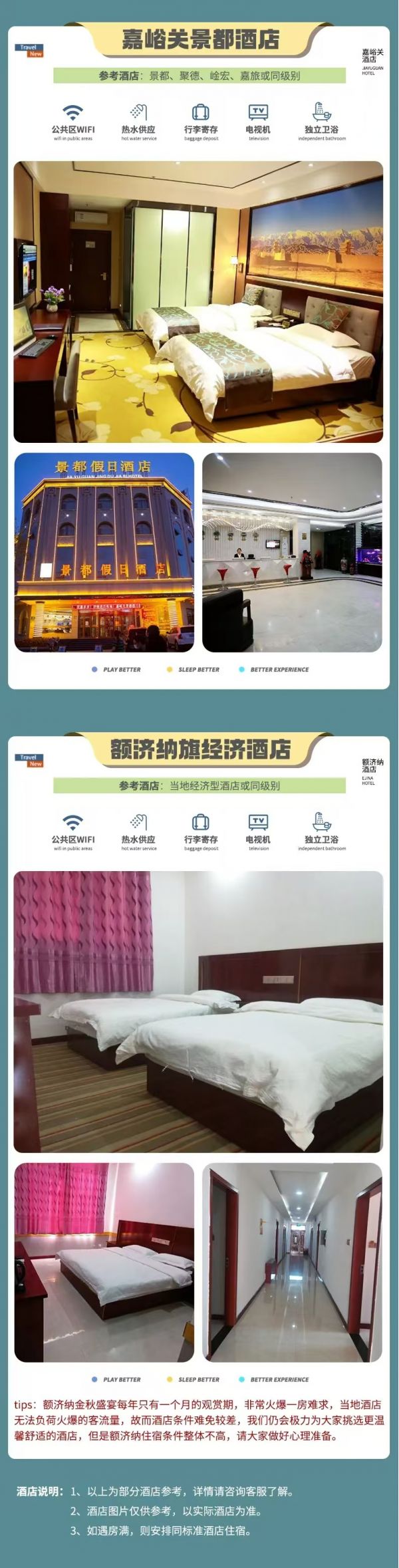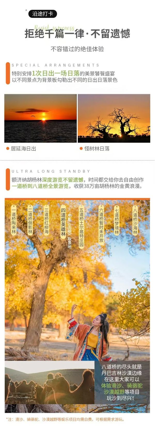 3. 額濟納金秋盛宴每年只有一個月的賞味期,全國各地的游客蜂擁而至,小鎮(zhèn)各項資源過載,當?shù)夭粩嗤晟破渑涮踪Y源但基礎設置仍較薄弱,請大家以平常心對待。
