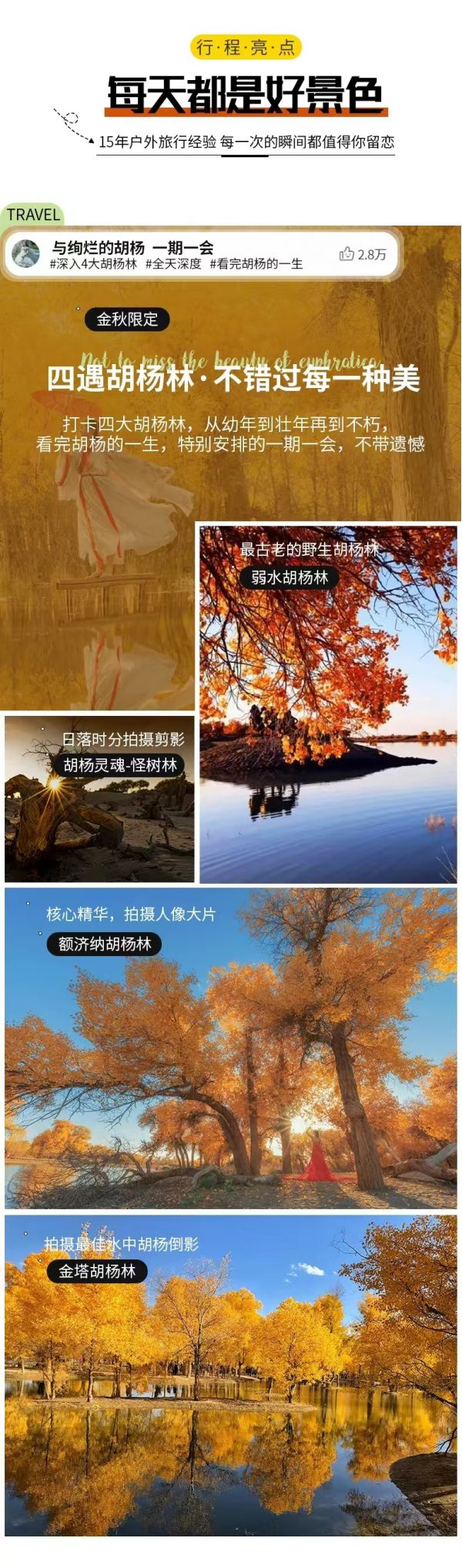 (3)金塔胡楊林:門票65元/人,區(qū)間車20元/人;