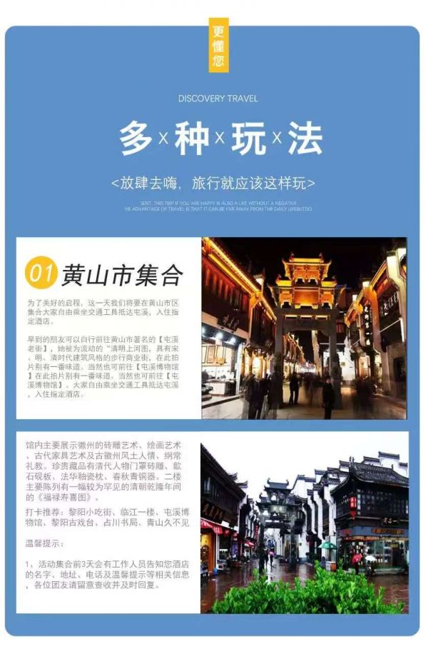 【集合地點】黃山市黎陽老街,出發(fā)前三天短信通知酒店