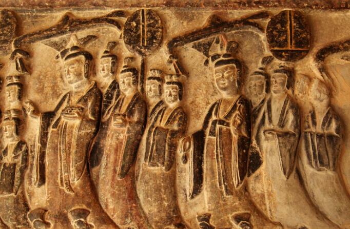 餐后稍事休息,下午考察鄭州的鞏義石窟。石窟諸佛造像多為方圓臉型,神態(tài)文雅恬靜,衣紋簡練。禮佛圖、飛天、神獸、佛教故事等是現(xiàn)存較完整的北魏浮雕造像。其中最精美的為第一窟“帝后禮佛圖”,構圖分三層,東邊是以皇帝為首的男供養(yǎng)為前導, 畫面中儀態(tài)雍雅的貴族和身體矮小的待從形成了尊卑鮮明的對照。第四窟的“帝后禮佛圖” 人物造型獨具匠心,前呼后擁的禮佛儀仗隊中供養(yǎng)人大腹便便,相貌森嚴,侍從瘦小低微,比主像小三分之一。儀仗隊中有的為帝后攜提衣裙,有的執(zhí)扇撐傘,有的手捧祭器,浩浩蕩蕩地簇擁帝后進香禮佛,表現(xiàn)了皇室宗教活動的盛大場面。構圖簡練生動,刻工細膩,為我國石窟浮雕藝術中罕見的杰作。