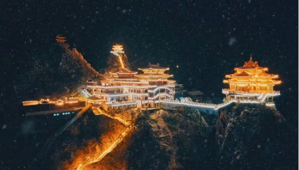 觀看夜晚金頂燈光秀之后下山,晚餐后住宿酒店。