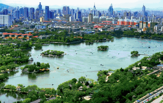 大明湖是濟(jì)南三大名勝之一,是繁華都市中一處難得的天然湖泊,也是泉城重要風(fēng)景名勝和開(kāi)放窗口,聞名中外的旅游勝地,素有“泉城明珠”的美譽(yù)。它位于濟(jì)南市中心偏東北處、舊城區(qū)北部。大明湖是一個(gè)由城內(nèi)眾泉匯流而成的天然湖泊,面積甚大,幾乎占了舊城的四分之一。市區(qū)諸泉在此匯聚后,經(jīng)北水門流入小清河?,F(xiàn)今湖面46公頃(690畝),公園面積86公頃(1290畝),湖面約占百分之五十三,平均水深2米左右,最深處約4米。