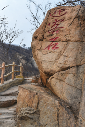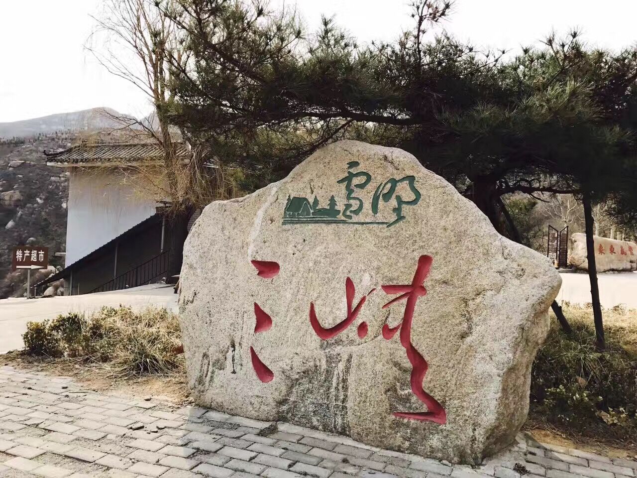 源于山崖上方一塊巨石
