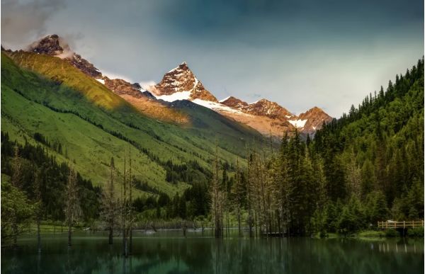 出隧道后,很快抵達(dá)四姑娘山雙橋溝景區(qū)。雙橋溝是四姑娘山三條溝中開發(fā)最完善、風(fēng)景最為集中的一條。進(jìn)入景區(qū)后,乘坐觀光車依次游覽各個景點(diǎn)。景區(qū)內(nèi)雪山巍峨,山峰在陽光照耀下閃耀著圣潔的光芒;森林茂密,郁郁蔥蔥的樹木遮天蔽日;草甸廣袤,五彩斑斕的野花點(diǎn)綴其中。您可以在各個觀景臺下車,拍照留念,感受大自然的壯美。
