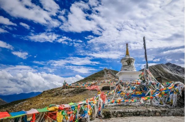 在酒店享用早餐后,從新都橋鎮(zhèn)出發(fā),翻越折多山。折多山海拔 4298 米,是川藏線上的重要埡口,有 “川藏第一關(guān)” 之稱。到達(dá)折多山埡口后,您可以看到壯觀的雪山景色,埡口處掛滿了五彩經(jīng)幡,隨風(fēng)飄動。這里被稱為川藏第一祈福地,您可以在這里為自己和家人祈福,系上經(jīng)幡,許下美好的心愿。