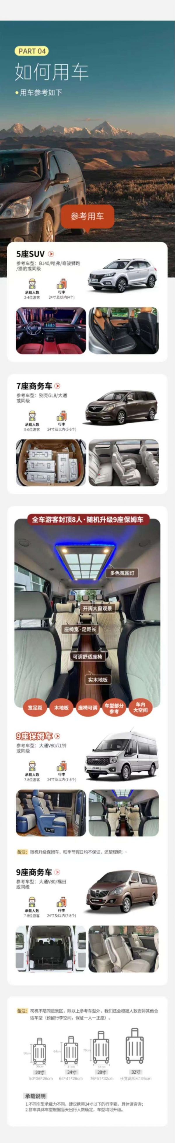 7-8位游客:隨機升級乘坐9座保姆車(節(jié)假日不能保證團(tuán)團(tuán)升級)或9座商務(wù)車
