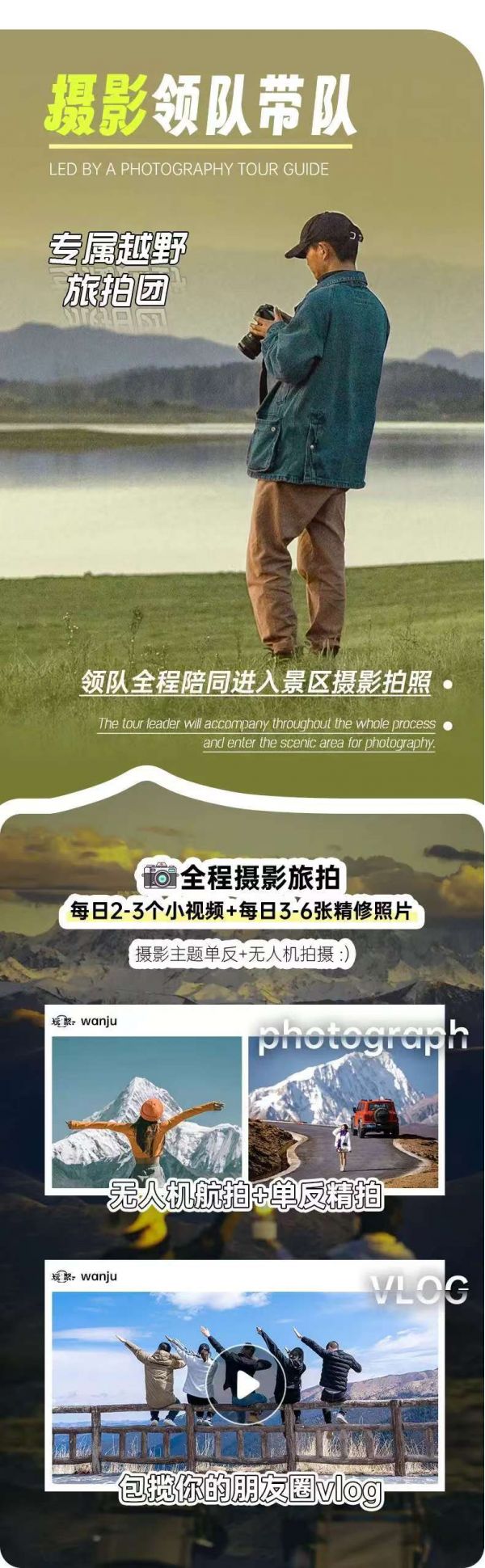 專(zhuān)業(yè)司機(jī)兼領(lǐng)隊(duì),全程跟隨進(jìn)入景區(qū)拍照