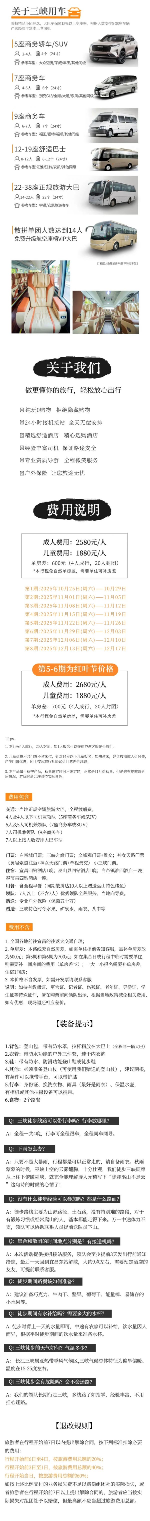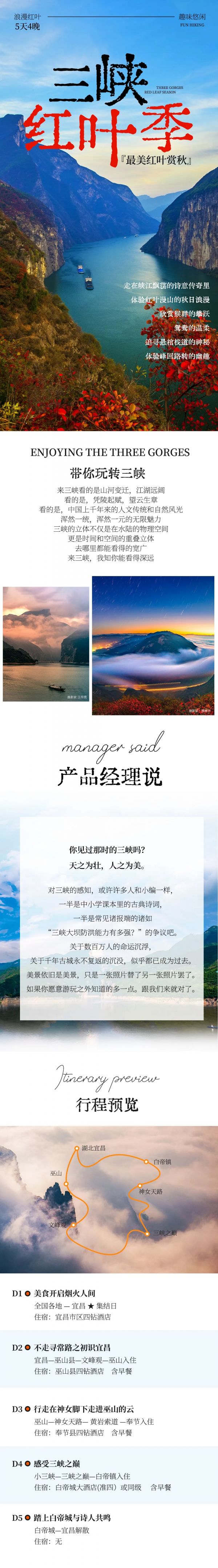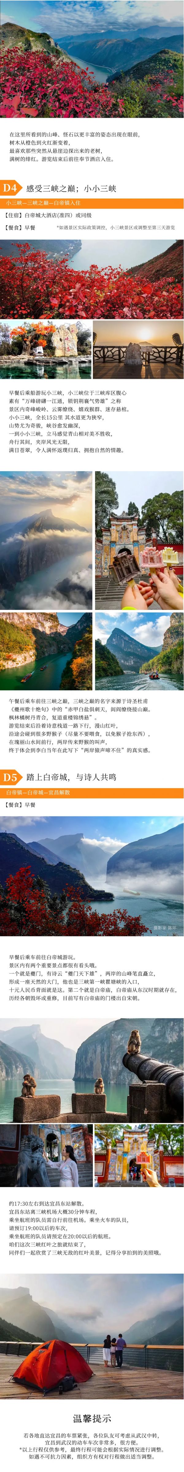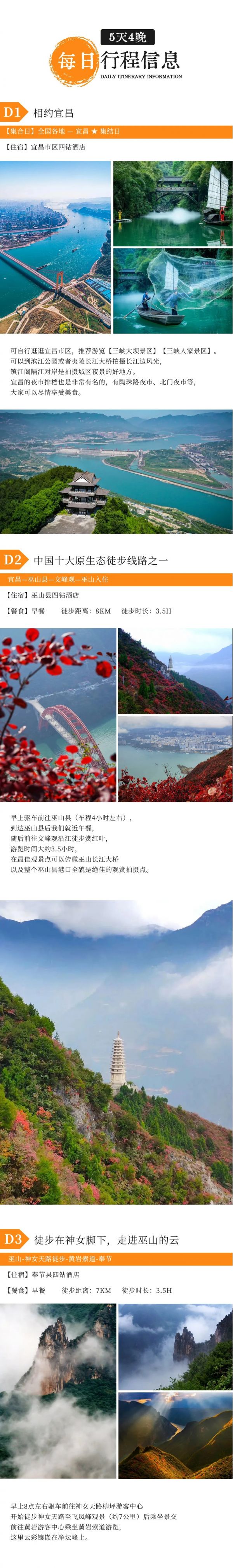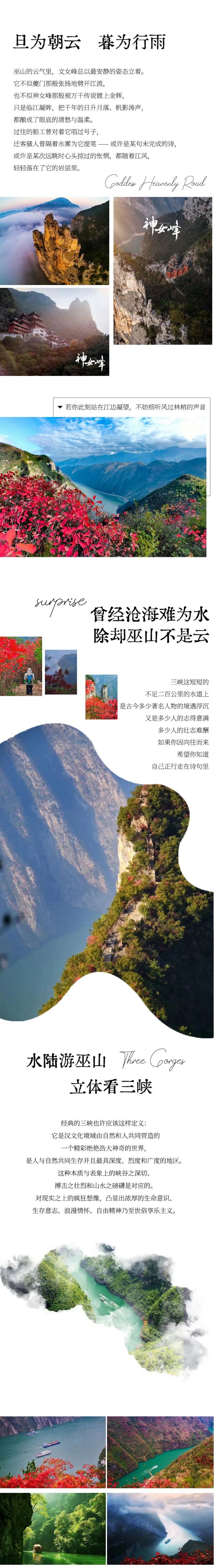 A:只要不是大暴雨,行程都是可以正常走的,請(qǐng)自備雨衣。秋雨蒙蒙的時(shí)候,巫峽上空的云霧翻騰,十分壯觀,我們徒步三峽畫廊從上往下俯瞰巫峽,就完全能理解詩(shī)人元稹寫下“除卻巫山不是云”這句詩(shī)的時(shí)候的心情了!