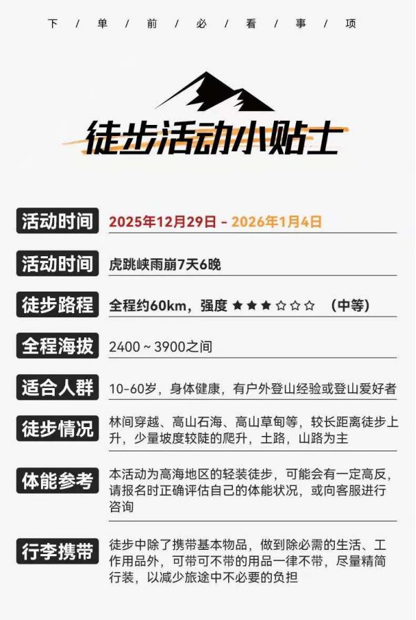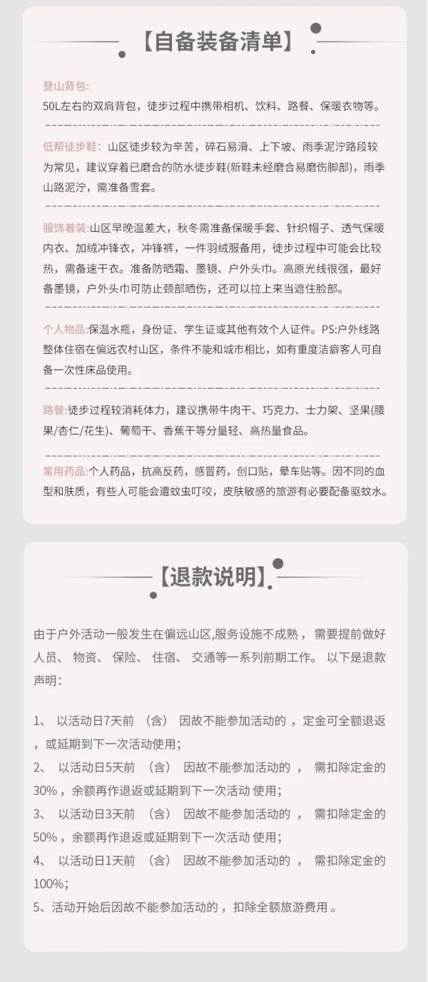 徒步路線較為偏遠(yuǎn),條件有限,主辦方有權(quán)根據(jù)具體房態(tài)進(jìn)行調(diào)整