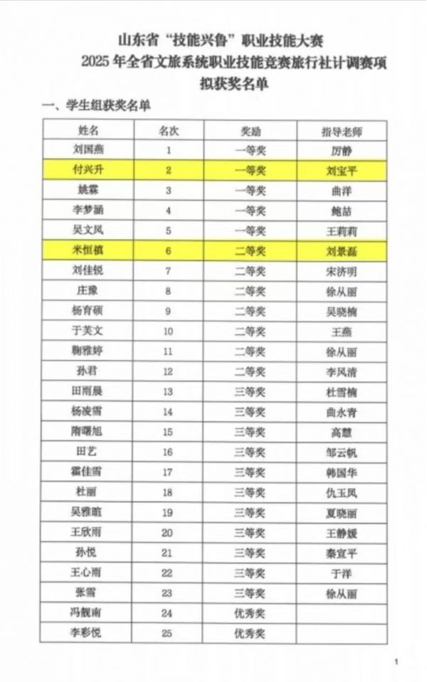 12月11日,山東省“技能興魯”職業(yè)技能大賽旅行社計調(diào)賽項獲獎名單正式發(fā)布。由聊城市精品旅游促進會旅行社專委會會長劉寶平帶領的聊職院師生團隊,憑借扎實的專業(yè)功底與出色的實操能力在賽事中脫穎而出,一舉斬獲多項榮譽。