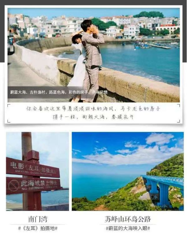 早餐后乘車前往東山島;抵達后前往【南門灣】海灣遼闊、沙灘平緩、綠樹成蔭,極具南國濱海風光特色。這里靜泊在海 上的漁船,與海釣的人們相映成趣,蔚藍的藍天和大海交匯在遠方,優(yōu)美的景色吸引了電影《左耳》、綜藝 《我們來了》來此拍攝取景。