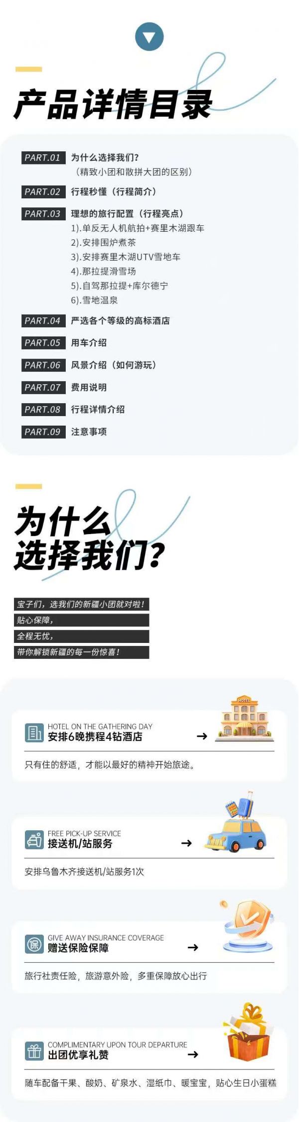 (注:冬季冰雪路面易滑,每年均有不少無冰雪駕駛經(jīng)驗的自駕司機撞到我社車輛。我社每年約有 20-50 臺車輛被撞,交警處理效率高。通常僅涉及保險杠或燈具等小問題,不會因此換車。若車輛嚴重損壞無法行駛,我社在阿勒泰地區(qū)有車輛調(diào)度中心,可安排車輛接管游客,通常需耽誤約5小時。此時需游客保持耐心,車上仍提供暖氣,也可就近下車玩耍。此情況下無額外費用退還,亦不額外收費。修車及換車損失由我社承擔相比自駕更為安心。)