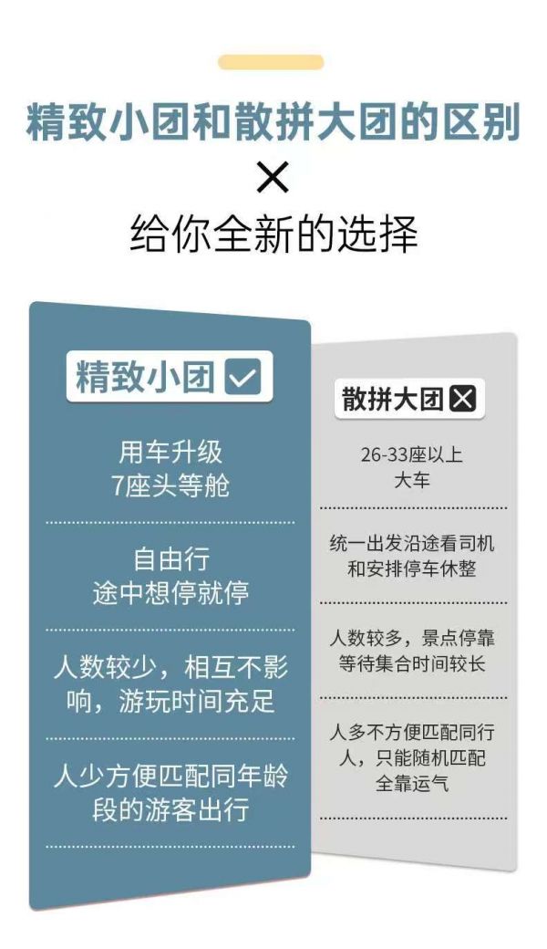 本行程為全國 2-6 人拼團(2 人成行/6 人上限),因隨機組客特性,無法提前篩選拼友的年齡、性別、地域等信息。特別提示:對社交環(huán)境有特殊要求的游客,建議選擇定制包車服務(wù)。